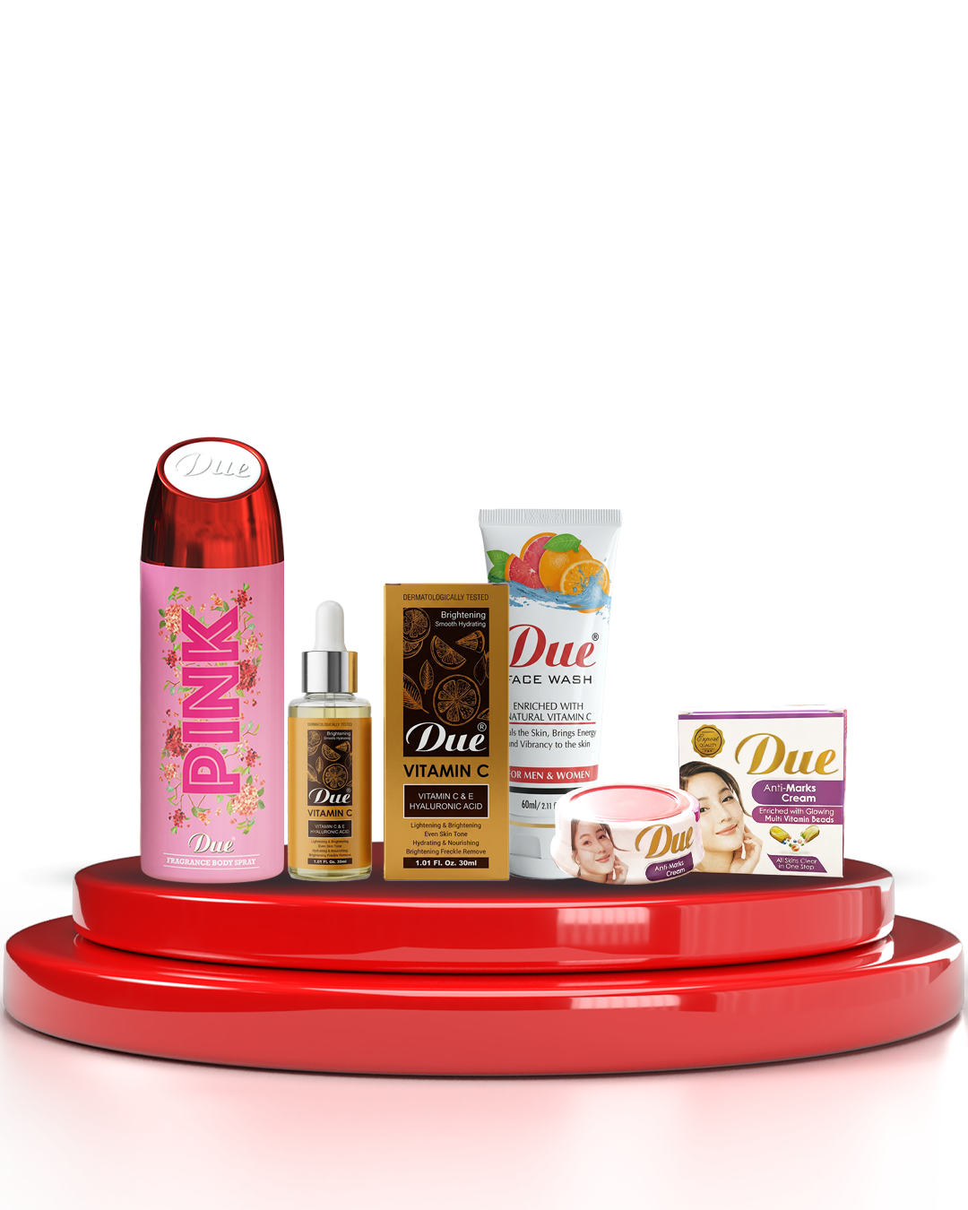 Includes: Vitamin C Serum, Vitamin C Face Wash, Pink Body Spray, Anti-Marks Cream.